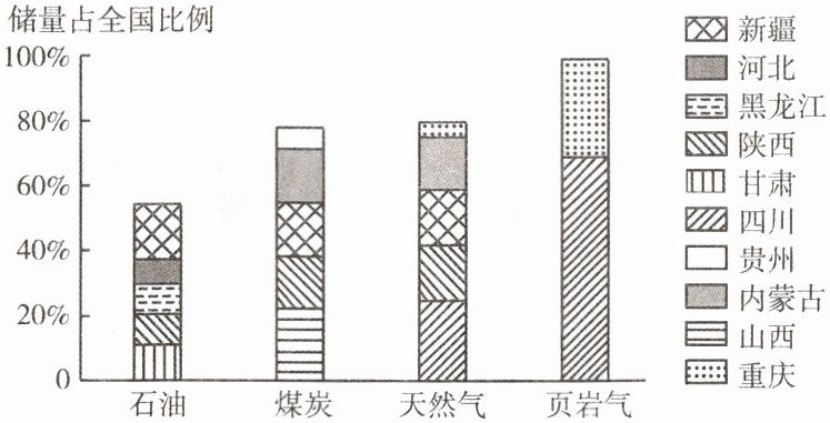 近年来,我国不断推进矿业领域绿色发展,矿产资源的勘探开发取得了重要进展。下图为我国已探明的主要能源矿产储量地区分布图(截至2021年底),读图完成1、2题。