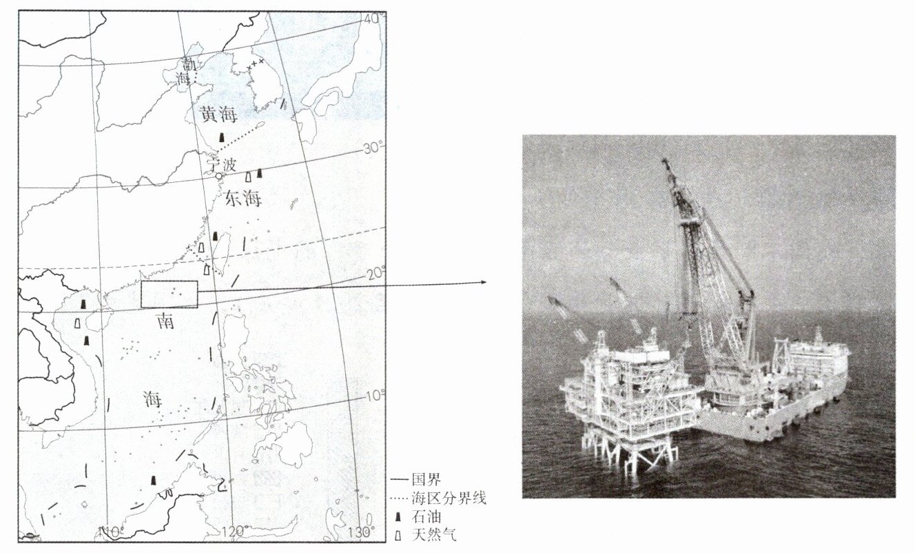 “海基二号”是由我国自主设计建造的亚洲第一深水导管架,为有效开发我国中深水海域的油气资源开拓了一条新路。下图为“海基二号”位置示意和景观图。完成5~7题。