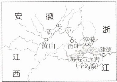 浙江新安江水库亦称“千岛湖”,是某矿泉水公司最大的水源供给地,也是长三角地区众多城市饮用水源的首选地。右图为新安江流域示意图。据此完成11~13题。