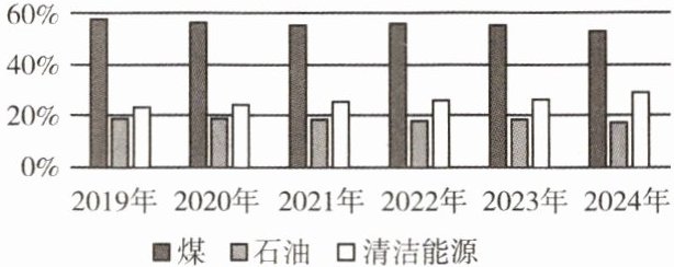 13. 我国是能源生产和消费大国,能源安全关系着我国经济的可持续发展。下图为我国2019—2024年能源消费占比示意图,读图,回答下列问题。