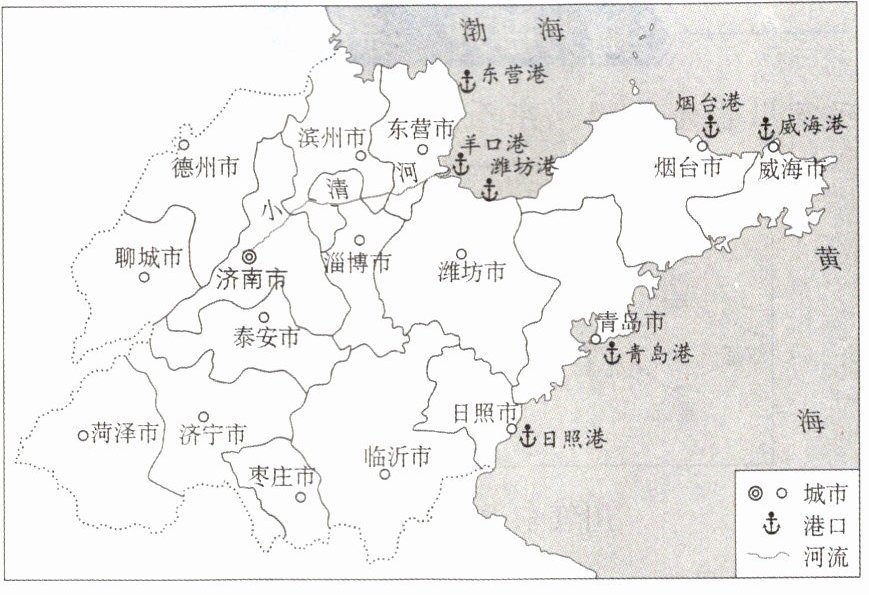 小清河复航工程跨越济南、滨州、淄博、东营、潍坊五市。复航后小清河每年运量将达4000万吨,相当于胶济铁路的运量。读图完成3、4题。