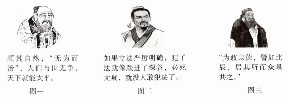 (5)你最欣赏三幅图片中哪一家的治国思想?请说出你的理由。(包括这家学派的主要思想和现实意义)