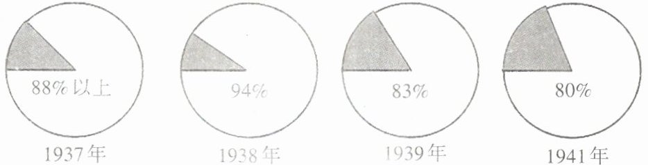 6. 日本法西斯在二战期间对亚太地区进行侵略扩张。下图为日本在侵华战争中投入的陆军占其陆军总兵力的百分比,对此解读正确的是(