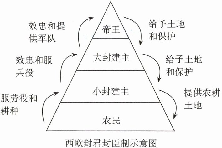 (3)封君封臣制。封君与封臣的关系有着严格的等级性;权利、义务交织在一起,有一定的契约意义。(任答一点即可)