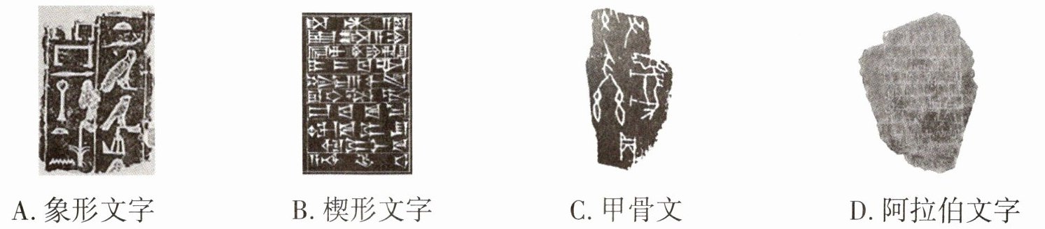 4. “两河流域的苏美尔人很早就发明了文字。他们通常用削成尖头的芦秆或木棒做笔,在未干的软泥版上压刻出符号。这些符号的线条由粗到细,很像木楔。”材料中提及的文字被称为( )