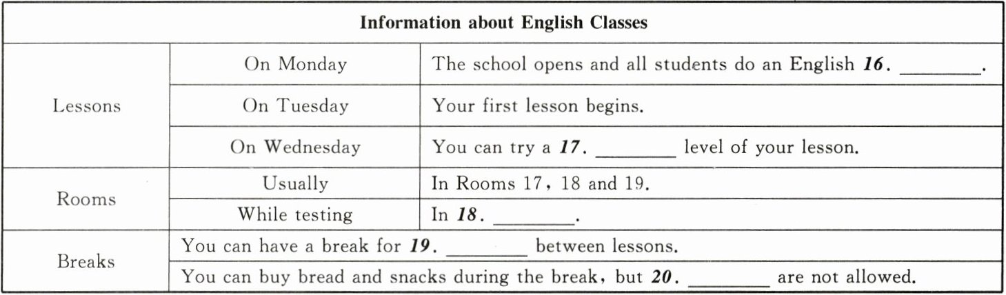 听下面一段短文,根据你所听到的短文内容,从 A、B、C 三个选项中选出正确答案完成表格信息。本段短文读两遍。