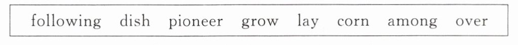 1. among 2. will grow 3. dishes 4. following 5. lay 6. pioneers 7. corn 8. over