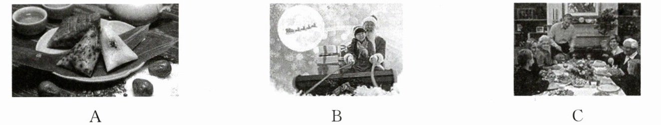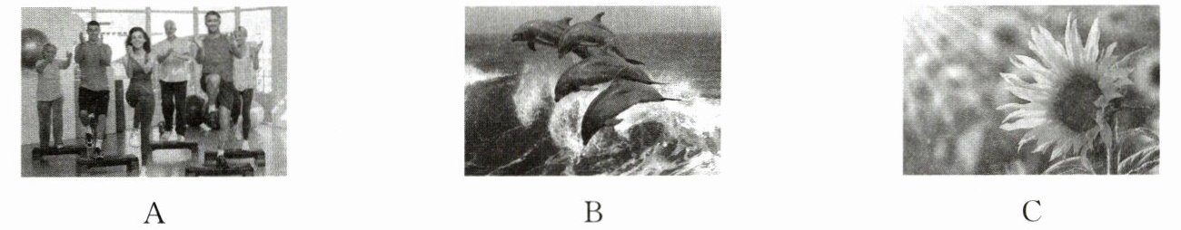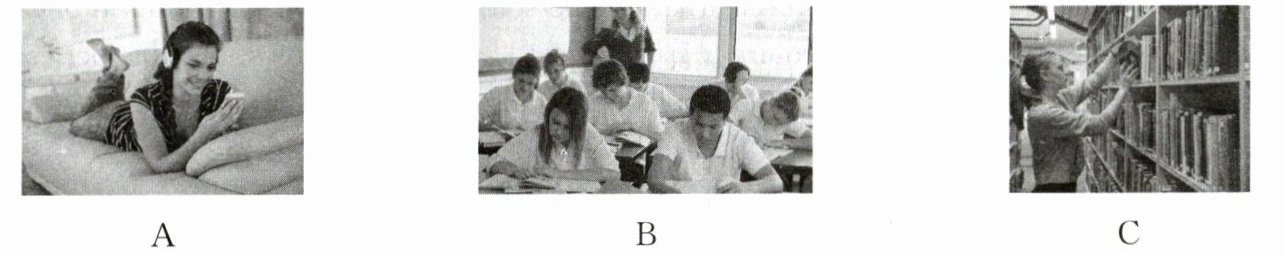 听下面 5 段小对话,每段对话后有一个问题,从所给的 A、B、C 三个选项中选出符合题意的图片。