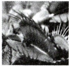 The Venus - flytrap is a very strange plant. It grows in dry parts of the United States. Its leaves are like the pages of a book. They can open and close very quickly. Inside the leaves, there are three small hairs.