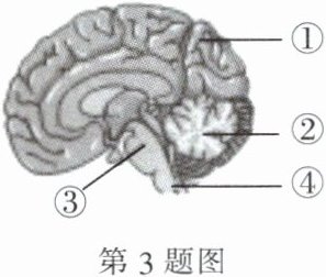 3. 体操运动员在空中完成高难度动作需要很强的平衡能力。人体协调运动、维持身体平衡的结构主要是图中的(