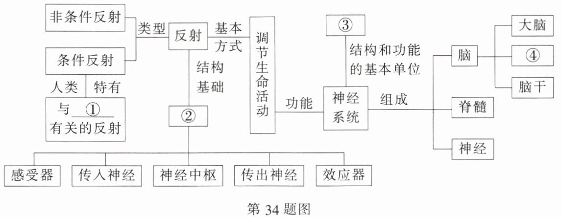 34. 如图是神经系统的概念图,请写出图中数字所代表的内容。