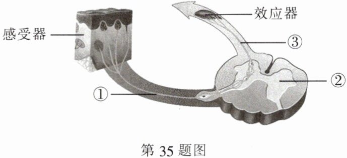 35. 如图是缩手反射示意图,请据图分析并回答下列问题。