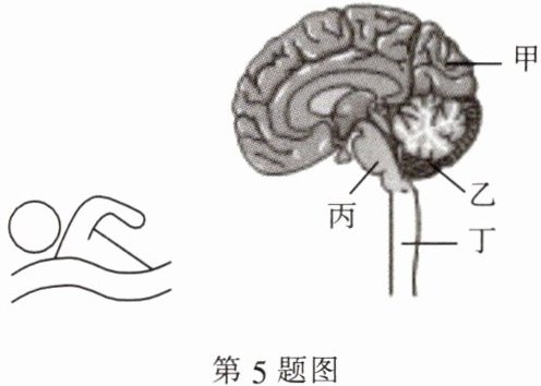 5. 如图,下列关于游泳时神经系统发挥作用的叙述,正确的是(