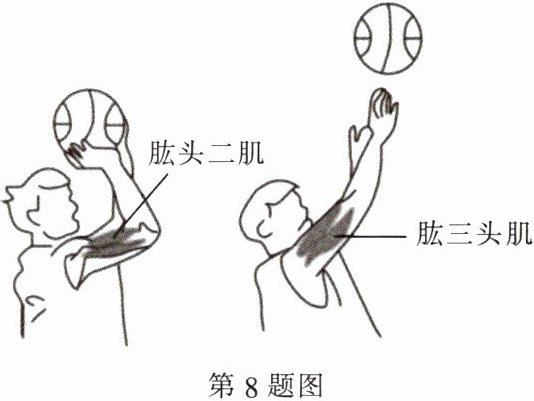 8. 篮球运动是中学生喜爱的运动之一,如图是某学生投篮的分解动作示意图。下列相关叙述不正确的是(