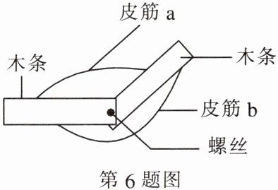 6. 生物小组同学利用身边的材料制作了一个肌肉牵拉骨运动的模型(如图所示),其中木条、螺丝、皮筋分别代表(