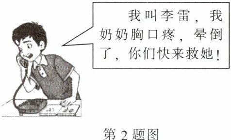 2. (2024·镇江)遇到有人晕倒等紧急情况,一定要尽快拨打“120”急救电话。如图所示对话中缺少的必要信息是(