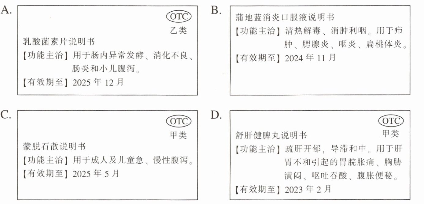 11. 某同学近期消化不良。依据药品说明书的部分信息,你推荐的药物是(