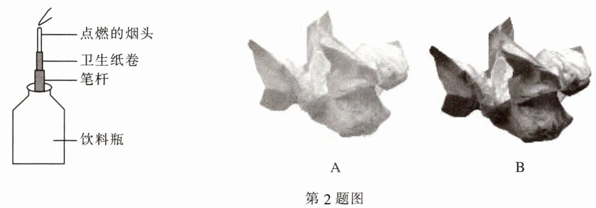 2. 生物课上,某同学用自制的简易装置模拟吸烟过程。如图,A为普通卫生纸,B为实验后的卫生纸。下列叙述错误的是(