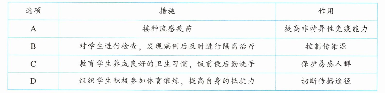11. 学校为了防止流感病毒的传播采取了多项措施。下列措施和作用对应关系最恰当的是(
