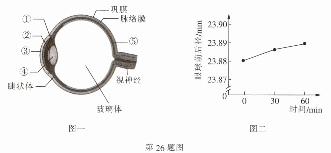 26. </img>眼是获取外界信息的重要器官,青少年要科学用眼,保护视力。结合图示回答相关问题。