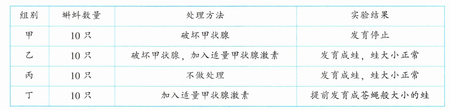 17. (3.5分) 探究实践是初中学生应具备的核心素养之一。某小组同学为了研究甲状腺的功能,进行了如下表所示的实验,请分析并回答问题。