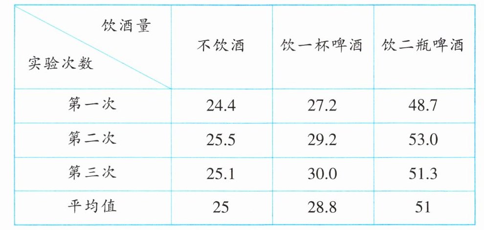 (2)实验结果表明:饮酒后爸爸的反应速度