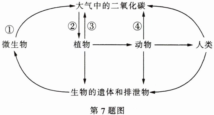 7. 如图是生物圈碳氧平衡相关图解,下列生理过程描述中不正确的是(