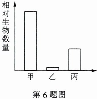 6. 如图所示是某水库中甲、乙、丙三种生物在某一时间段内相对数量的关系,三种生物能构成一条完整的食物链。下列分析正确的是(