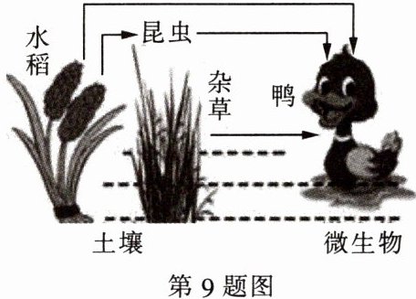 C.图中只有一条食物链,即水稻→昆虫→鸭