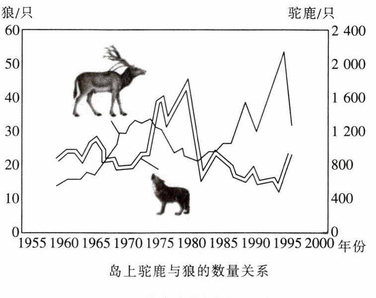 在某岛上,狼是驼鹿唯一的天敌,而驼鹿也是狼唯一的食物来源,狼和驼鹿完全依靠彼此而生存。20世纪50年代开始,科学家对岛上驼鹿的数量与狼的数量进行了持续调查,发现岛上驼鹿的数量与狼的数量的关系如图所示。下列叙述正确的是(