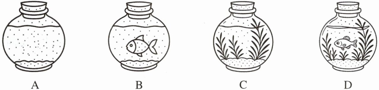 1. 如图是某同学制作的几个生态瓶,其中能表示一个完整的生态系统的是(