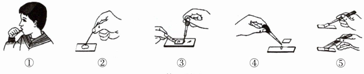 1. 如图是制作人的口腔上皮细胞临时装片的过程,据图分析回答问题(1)、(2):