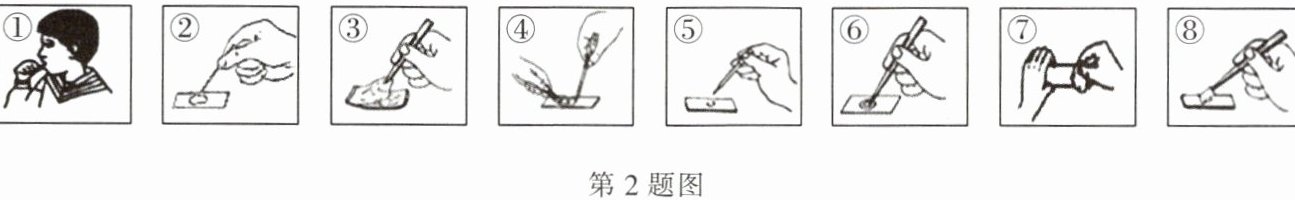 中,轻涂几下。(2) ③和⑥示意制作洋葱鳞片叶内表皮细胞临时装片的取材过程:③用镊子从洋葱鳞片叶
