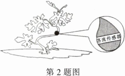2. (2024·湖北)我国科学家发明了一款新型植物茎流传感器(如图),可直接贴附在茎秆、叶片等表面,监测植物体内水分的运输及分配情况。由此推测,该传感器可监测的植物组织是(