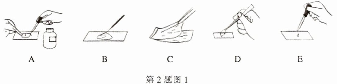 (用箭头和字母表示)。(2) 在制作人的口腔上皮细胞临时装片时,步骤 E 滴加的液体应该换为