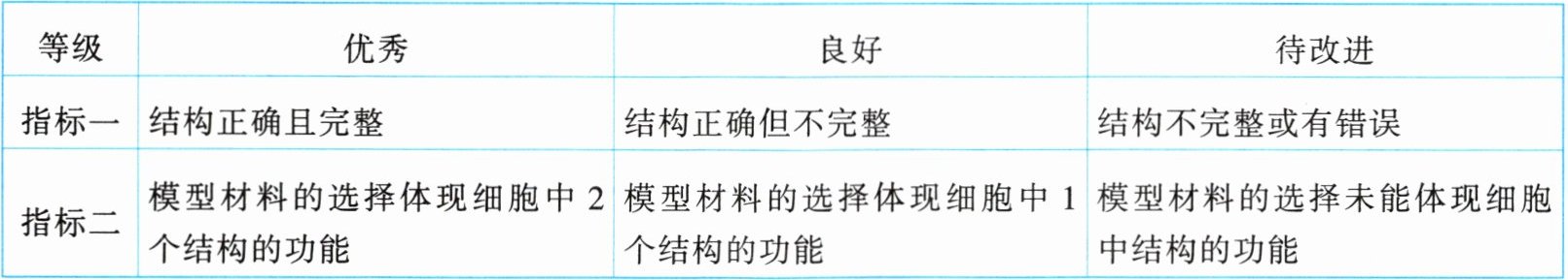 |指标二|模型材料的选择体现细胞中 2 个结构的功能|模型材料的选择体现细胞中 1 个结构的功能|模型材料的选择未能体现细胞中结构的功能|