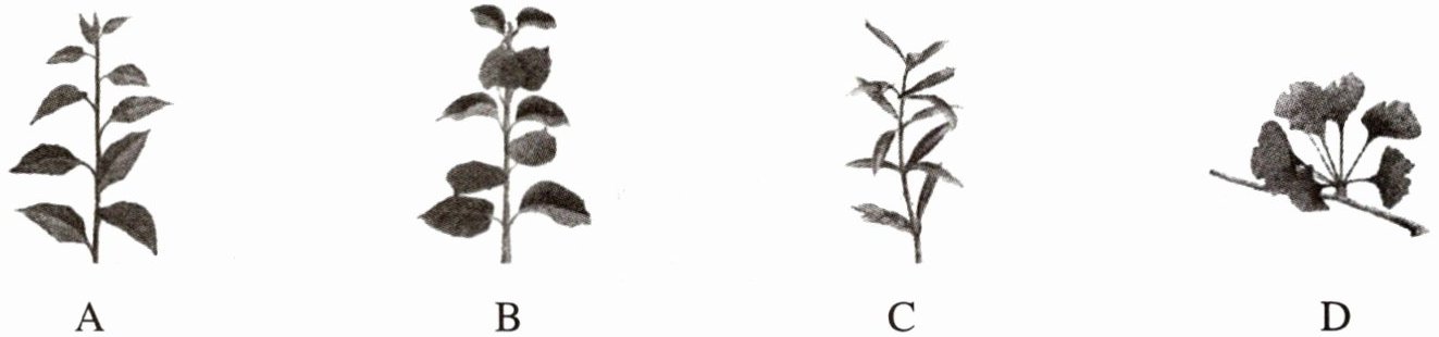 3. 银杏是一种古老的植物,叶片呈扇形,有长柄。据此描述观察下图,其中银杏是(