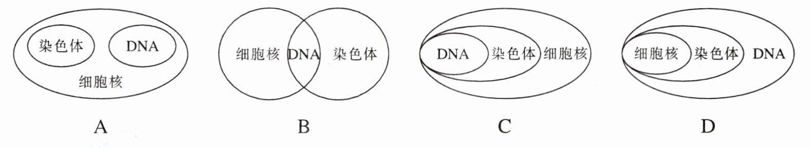 12. 下面能正确表示细胞核、染色体、DNA三个结构层次关系的概念图是(