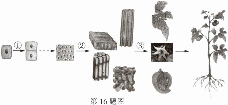 16.(3分)生物体具有一定的结构层次,能够完成各项生命活动。下图表示番茄植株的不同结构层次,结合图示回答相关问题: