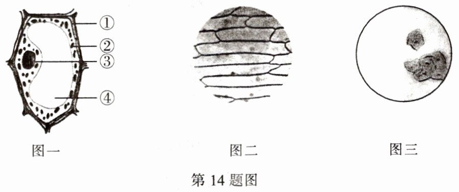 14.(3分)在实验室,同学们制作了洋葱鳞片叶内表皮细胞和人的口腔上皮细胞的临时装片,并利用显微镜观察了细胞结构。结合图示回答相关问题: