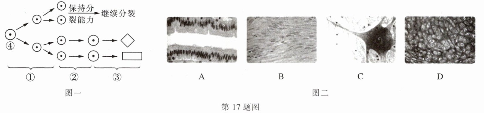 17.(3分)细胞是怎样构成生物体的呢?图一的概念图解释了这个问题的部分答案。请据图分析回答问题:
