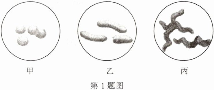 1. 如图是细菌的三种形态,图中甲、乙、丙依次是(