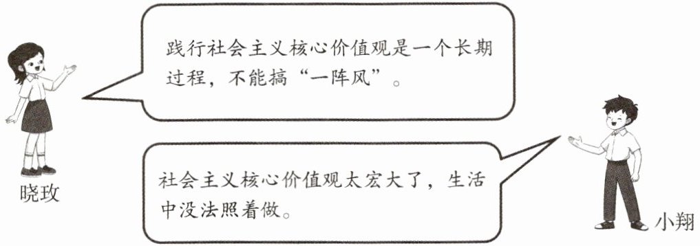 12. 评析观点,积极践行。在学习《凝聚价值追求》内容时,同学们对于培育和践行社会主义核心价值观有不同的看法: