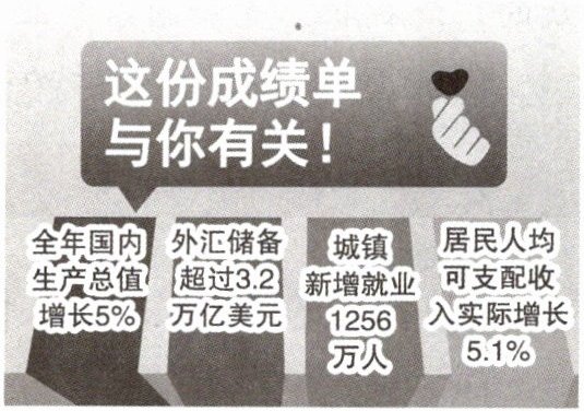 5. 2025年,全国两会《政府工作报告》对过去一年我国经济社会发展取得的重大成就和主要工作进行了回顾,结合右图,对“这份成绩单与你有关”解读正确的是( )