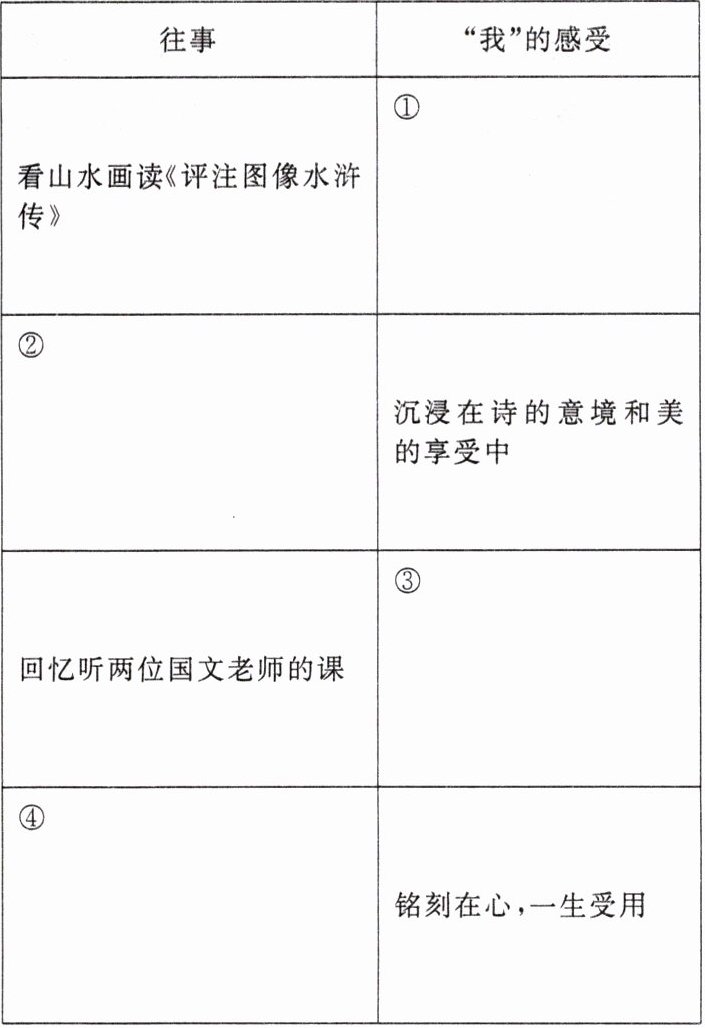 2. 本文在记事中融入了作者缕缕情思,阅读完全文,完成表格。