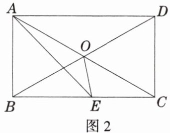 (2)如图 $2$,若 $AE$ 平分 $\angle BAD$ 交 $BC$ 于点 $E$,连接 $OE$,请直接写出图中除等边三角形外的所有等腰三角形。