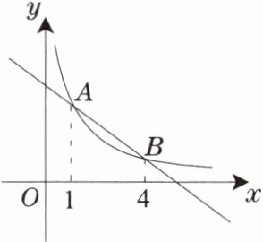 7. 如图,一次函数 $ y_1 = (k - 5)x + b $ 的图象在第一象限与反比例函数 $ y_2 = \frac{k}{x} $ 的图象相交于 $ A $,$ B $ 两点,当 $ y_1 > y_2 $ 时,$ x $ 的取值范围是 $ 1 < x < 4 $,则 $ k = $