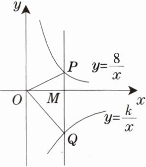 4. 如图,在平面直角坐标系中,点 $ M $ 为 $ x $ 轴正半轴上一点,过点 $ M $ 的直线 $ l // y $ 轴,且直线 $ l $ 分别与反比例函数 $ y = \frac{8}{x}(x > 0) $ 和 $ y = \frac{k}{x}(x > 0) $ 的图象交于 $ P $,$ Q $ 两点,若 $ S_{\triangle POQ} = 13 $,则 $ k $ 的值为