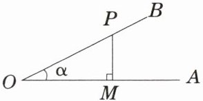 4. 如图,已知$P是射线OB$上的任意一点,$PM \perp OA于M$,且$PM:OM = 3:4$,则$\cos \alpha =$