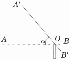 3. 如图,某停车场入口的栏杆$AB$,从水平位置绕点$O$旋转到A'B'的位置,已知$AO$的长为4米。若栏杆的旋转角为$\alpha$,则栏杆$A$端升高的高度为(